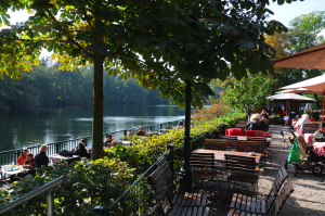 Alte Fischerhütte är en förtjusande restaurang vid Schlachtensee, bara ett par hundra meter bort och väl skyltad med vägvisare. Här finns det såväl en lite mer lyxbetonad avdelning som en stor, mer rustik utomhusservering med bord direkt vid vattnet. En plats för att stilla hunger och släcka törst – men också för rekreation och kontemplation. Närmare än så här kan man nog inte komma den berlinska föreställningen om ett idealiskt mål för en dagsutflykt.